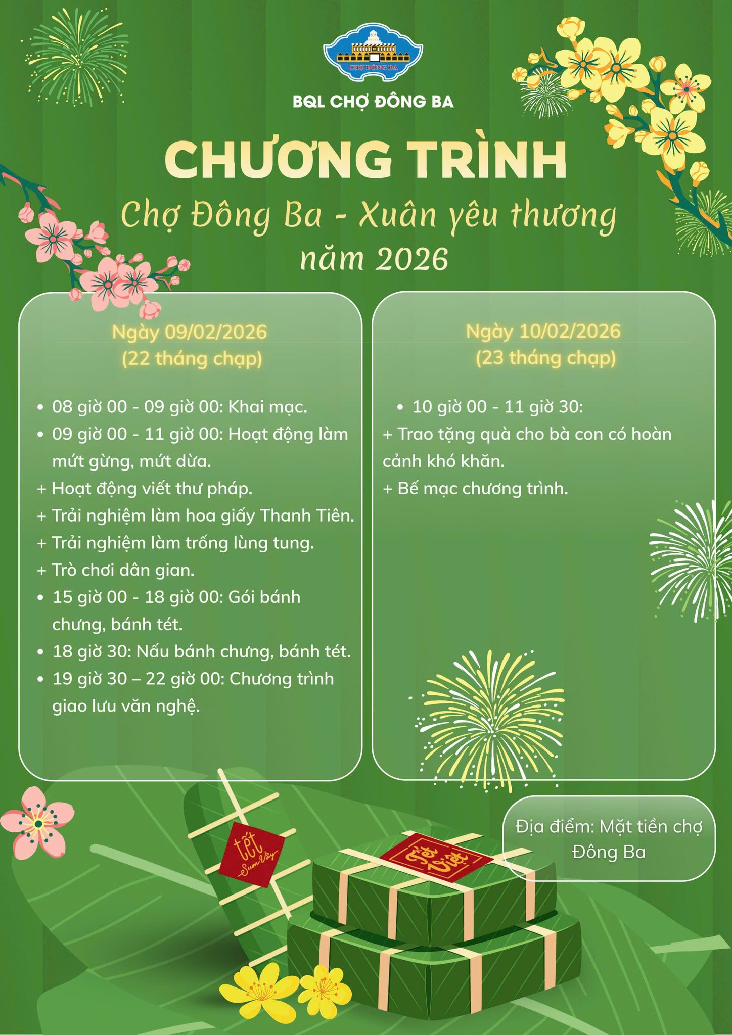 Khai mạc: 8h00, ngày 09/02/2026 (22 tháng Chạp)