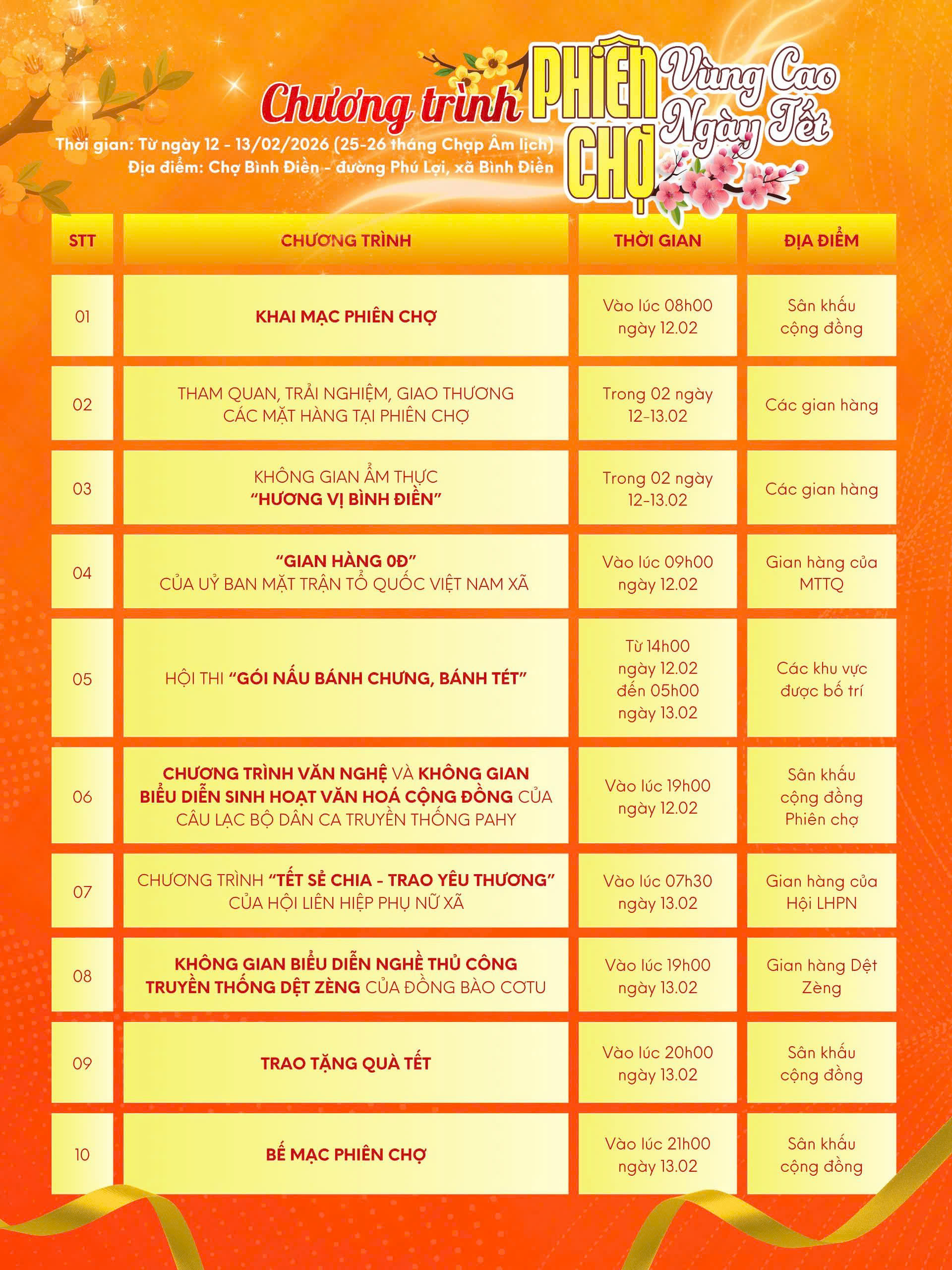 Mời bà con và du khách gần xa cùng đến tham quan, mua sắm, trải nghiệm không khí xuân ấm áp tại Phiên chợ Vùng cao ngày Tết với nhiều hoạt động văn hóa – ẩm thực – giao thương đặc sắc.